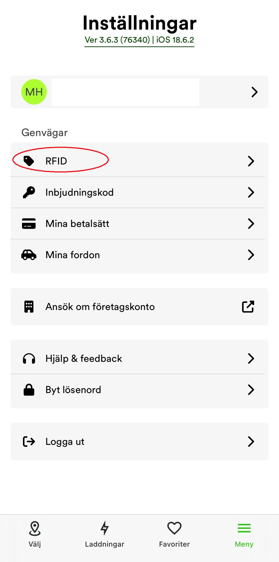 Du beställer en RFID-tagg i appen för 100kr/st. Gå till Meny > RFID, > Ny beställning, fyll i uppgifterna och betala direkt via Apple/Google pay eller betalkort.